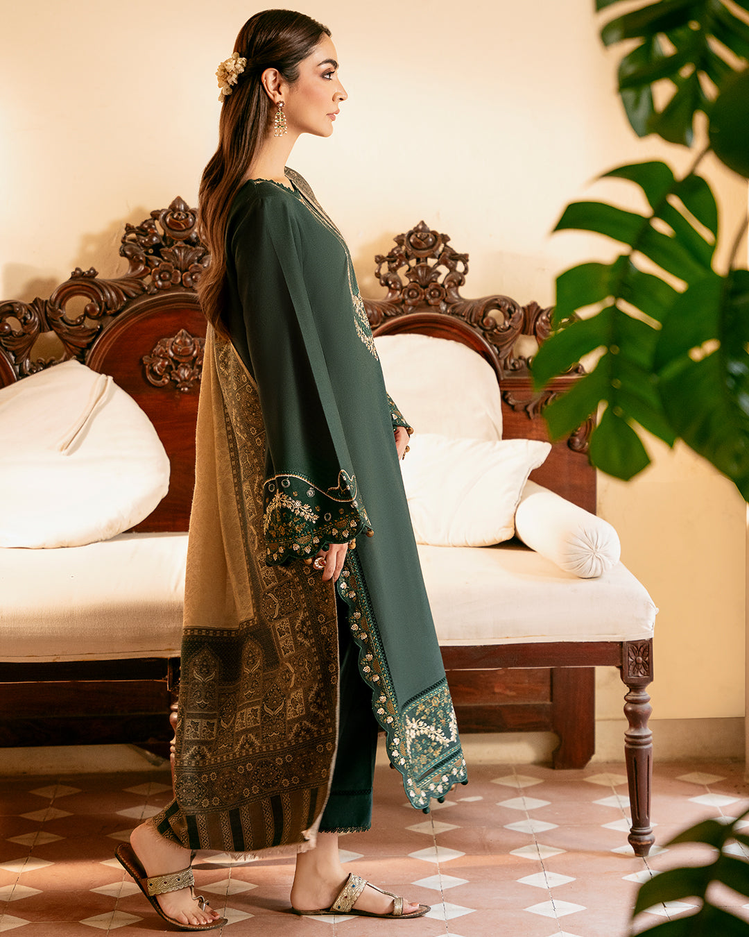 ADAN LIBAS-3PC KHADDAR PRINTED EMB SUIT LEH-2557